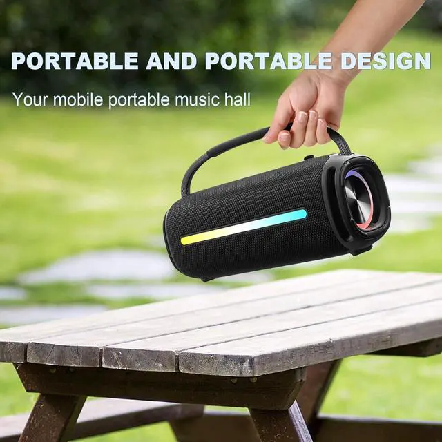 Portable Bluetooth Speaker, Outdoor Waterproof Wireless Speaker with Colorful Flashing Lights, 20W Super Bass, TWS Pairing Suitable for Outdoor, Party, Home, Beach, Travel (Black)