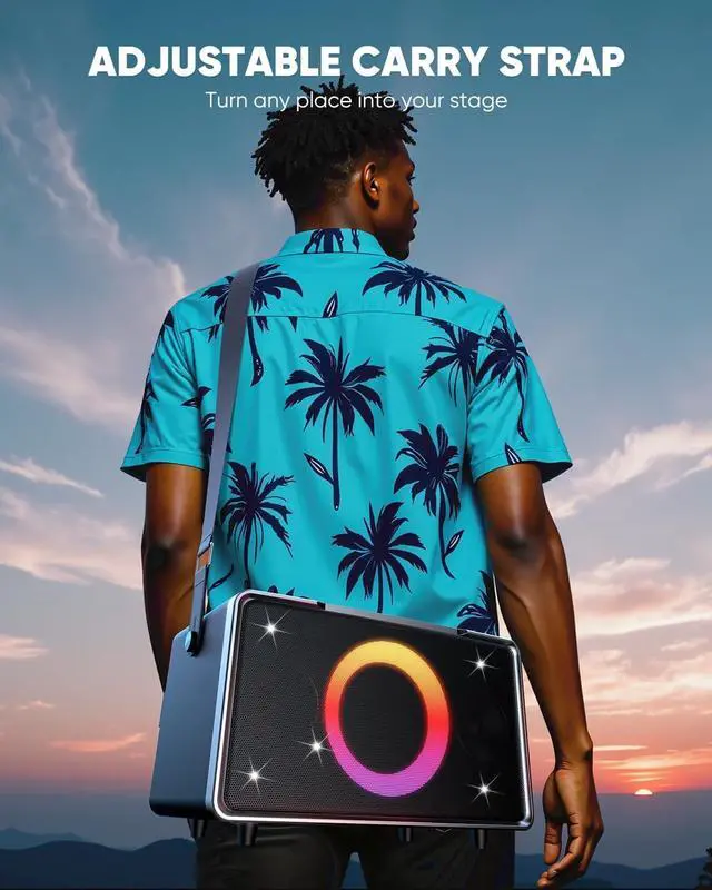 • PARTY NIGHT LIGHT SHOW: This outdoor speaker bluetooth have 7 Dynamic light modes sync with your music, dynamic lights sync with music, enhancing party atmospheres, instantly ignite the party atmosphere.
