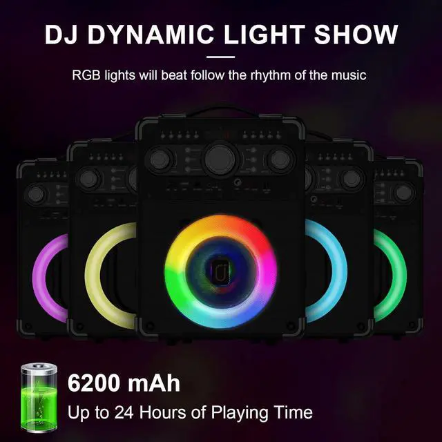 PORTABLE PARTYBOX AND LONG-LASTING: up to 8 hours of playtime. You don't have to worry about running out of power during a party because this karaoke machine can keep the music going all night long. and It's designed with a portable carrying handle, making it easy to take anywhere. You can enjoy your favorite music anytime, anywhere