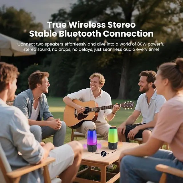 40W Stereo Sound & TWS Pairing (80W Total) 40W powerful audio performance + 360° surround sound delivers immersive listening: rich bass, clear mids, crisp highs, just like live concerts. Connect 2 Ooyi speakers via TWS mode to get 80W room-filling stereo soundideal for gaming, movie nights or large parties, creating unparalleled sound experience