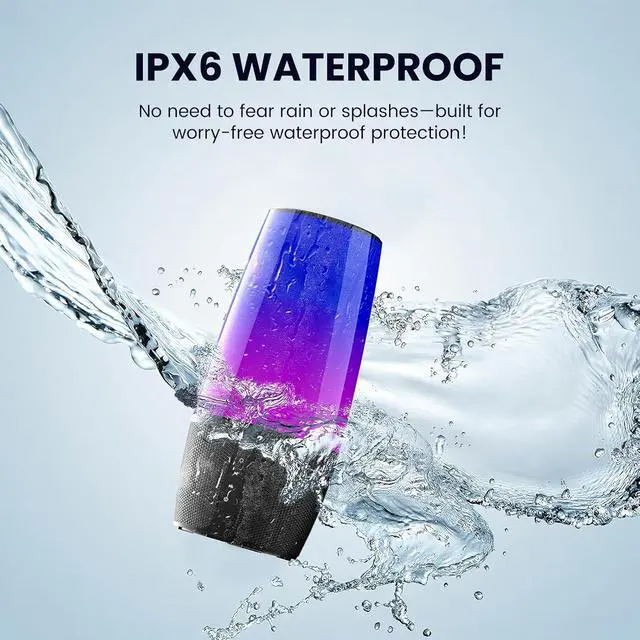 IPX6 Waterproof & Portable Design IPX6 waterproof rating protects against splashes, rain and even accidental spillssafe to use by the pool, at the beach or in the shower. Compact, lightweight design fits easily in backpacks or handholds, easy to carry anywhere. 3 connection modes: Bluetooth, TF card (MicroSD) and Aux-In, meeting different usage needs