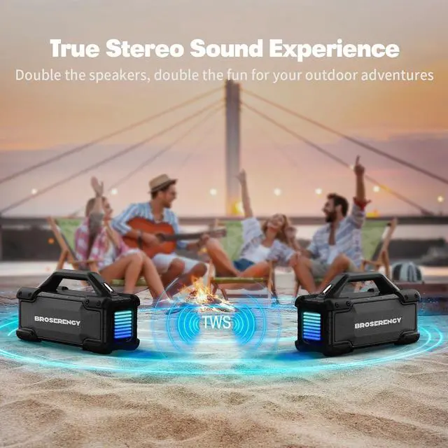 True Wireless Stereo Connection - Pair two Bluetooth speakers via TWS mode for 160W RMS and 240W peak stereo sound. Experience the thrill of true surround audio that fills your entire space. Perfect for outdoor gatherings or home parties, each Bluetooth speaker enhances depth and balance, creating a powerful portable speaker system. For deep, room-filling music, this Bluetooth speaker combo is the perfect portable speaker choice