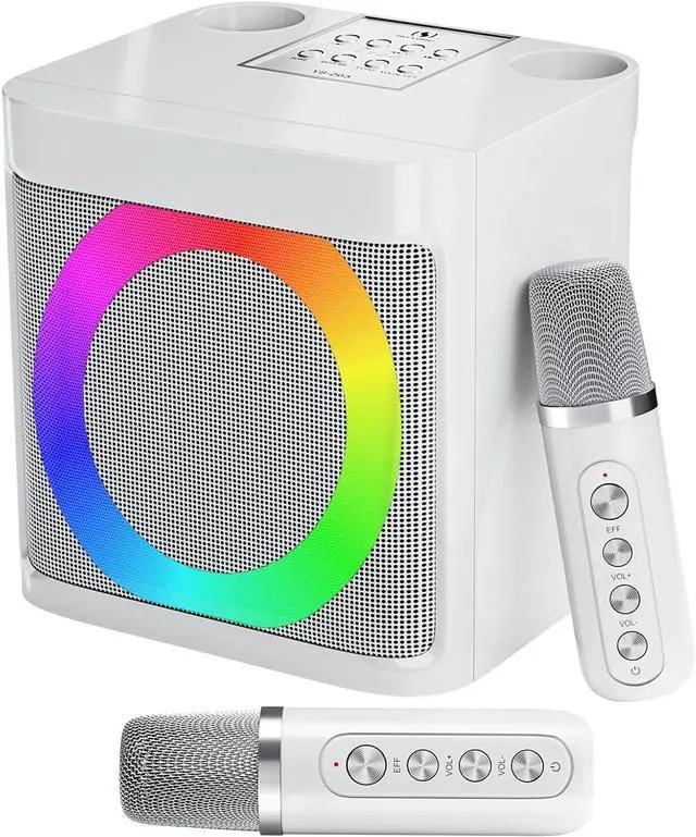 Vibrant Lights and Versatile FunctionsThe Karaoke machine features dazzling and colorful lights, creating a visually captivating performance. Additionally, Karaoke machine offers a range of versatile functions, including Bluetooth connectivity, professional-grade audio effects, voice modulation, and KTV-level sound effects, providing endless entertainment possibilities.