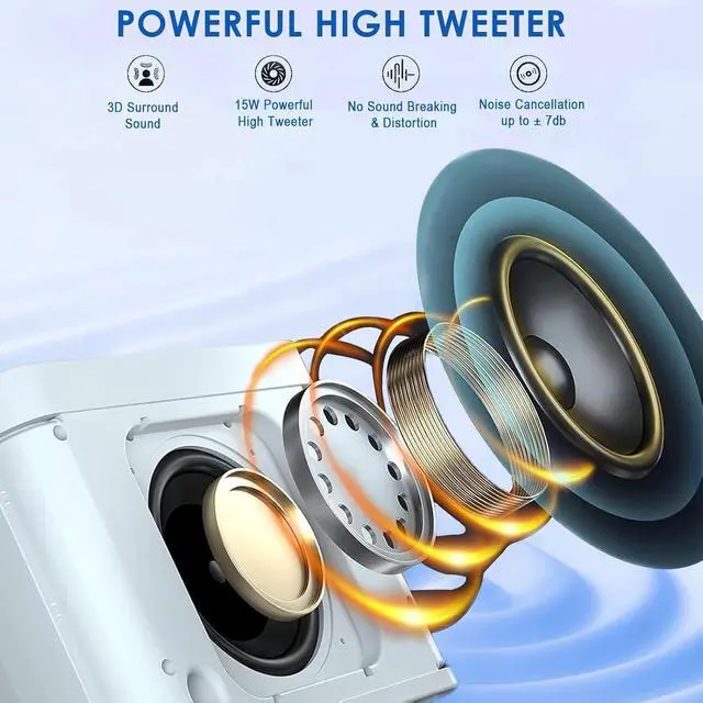 Excellent Karaoke SoundThis karaoke machine is equipped with 6.1'' subwoofer for full range stereo sound reproduction and amplifying your voice, which makes the bass stronger and more balanced, plus it does not distort the audio even at higher volumes. Super noise reduction and strong anti-interference ability ensure that you get clear and loud sound.