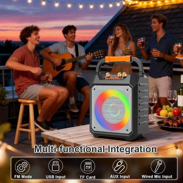 Wireless Fun with Seamless Bluetooth Tired of messy cables? The built-in bluetooth karaoke speaker pairs instantly with your phone, tablet, or laptop for a hassle-free connection. Stream your favorite playlists from Spotify, Apple Music, or YouTube and sing along without interruptions. If you prefer wired connections, just plug in via AUX, USB, or TF card. The versatility of this karaoke machine ensures everyone can enjoy music the way they like.