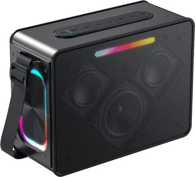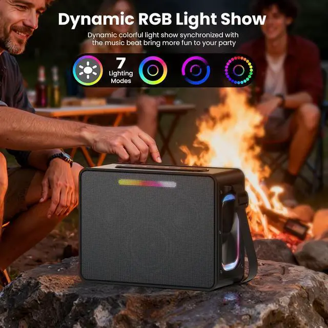 [100W Powerful Bluetooth Speaker] This powerful portable Bluetooth speaker is equipped with a sound system featuring three unit speakers (one tweeter and two woofers) that can deliver a peak output of 100W. It utilizes dual diaphragms and woofer technology to improve crisper sound quality. The dual woofer units allow you to experience the bass fun of every song and bring the ultimate auditory experience. The tweeter can penetrate most noise, allowing you to enjoy a vivid, powerful, natural, and authentic auditory experience even in a noisy environment. It's perfectly suited for music aficionados.