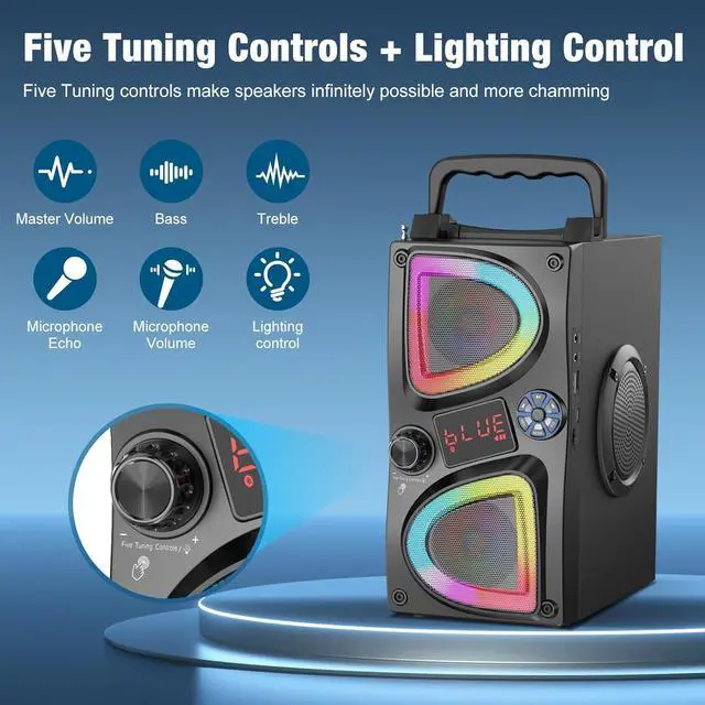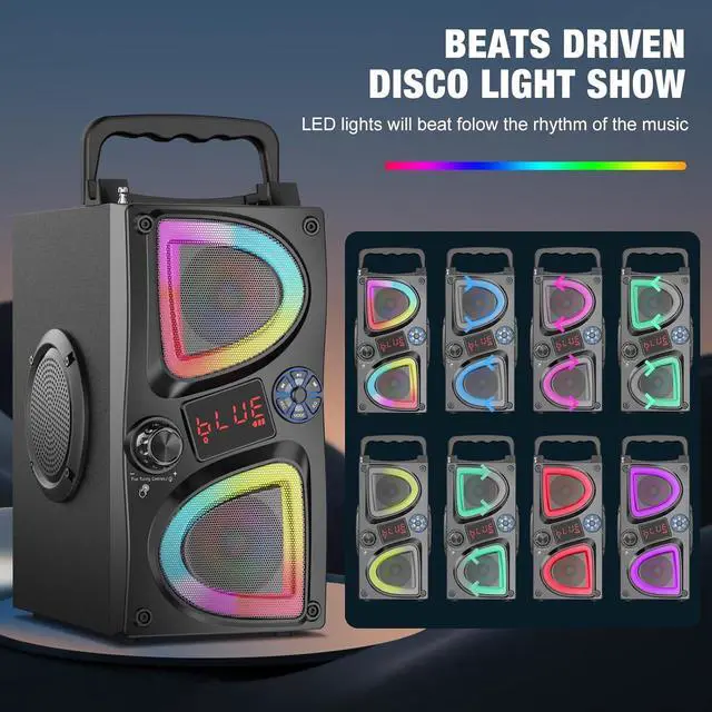 Wireless Speaker with Dazzling Light ShowElevate your parties to the next level with our speaker's stunning light show feature. Watch as vibrant colors dance and pulse to the rhythm of the music, creating an electrifying atmosphere that will energize your gatherings.