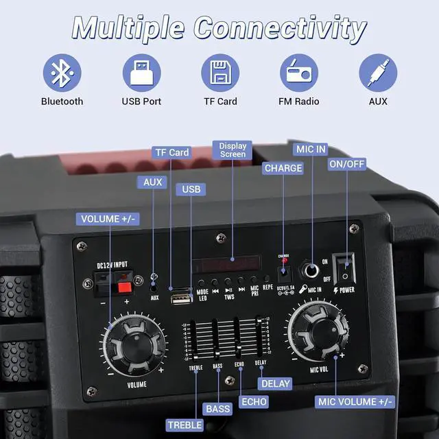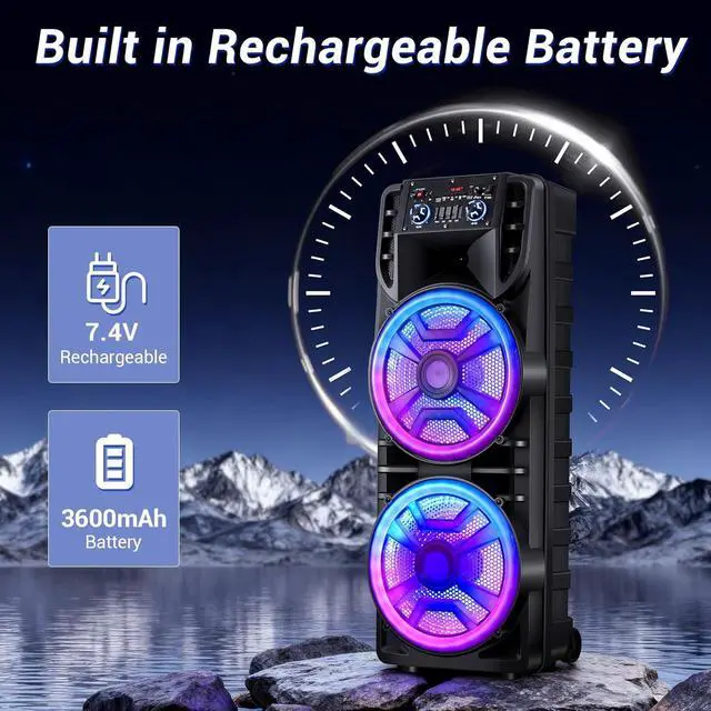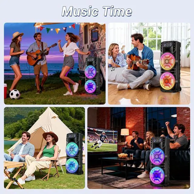 The video showcases the product in use. The video guides you through product setup. The video compares multiple products. The video shows the product being unpacked. Merchant Video Speaker SzieDual 12 inch WoofersOutput Power80Charging Time6 hoursPlaying Time4 hoursAudio InputsUSB/TF/BT/FM/AUXSpecial FeatureTWS FunctionRechargeable Battery 7.4V 3600mAhWireless Range10m party bluetooth speaker