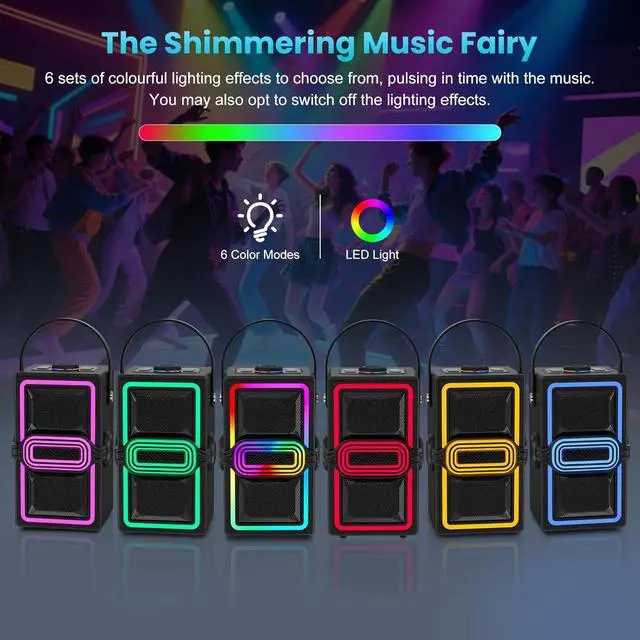 Dynamic LED Light Show - The partybox is crazy, have a unique disco lighting design. The lights can jump with the rhythm of the music, you can also switch to a variety of lighting effects for any party or gathering to create a cool dynamic atmosphere. You can enjoy the light show while listening to your favorite music, giving you an unforgettable experience. It light up the fiery party, and push the passion to a new level (You may also choose to switch off the light when you are using it.)