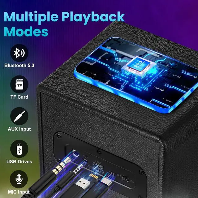 Multiple Connections, Easy to Use - The speakers bluetooth wireless has many types of connections to play music. You can connect the speaker to your device via Bluetooth, USB drive / TF card or AUX mode to play music, and it also supports microphone. You have the flexibility to choose your preferred playback mode, connect easily to enjoy music anytime, anywhere.