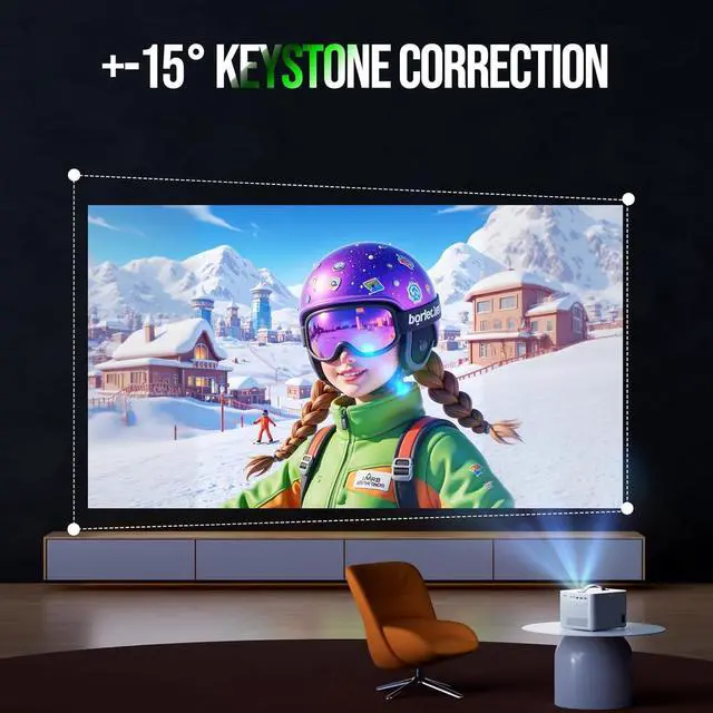 ±15° Vertical Keystone & Manual FocusThe PR01 smart projector features ±15° vertical keystone correction, ensuring effortless image adjustments. The zoom function lets you fine-tune screen size without moving the projector. Manual focus adjustment requires no tools and can be operated with one hand for crystal-clear visuals
