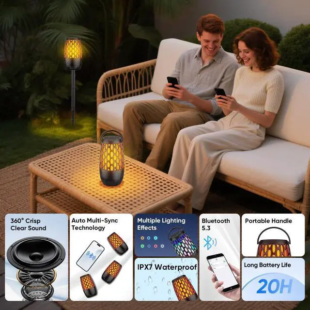 LED Flame Outdoor Speaker - Experience immersive 360° sound and captivating ambient light in this LED outdoor speaker. Perfect for home or outdoor use, it delivers crystal-clear audio, warm illumination, and a cozy, romantic vibeideal for relaxing, recharging, or entertaining.