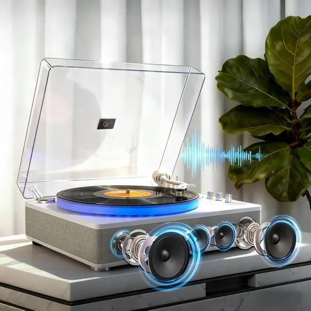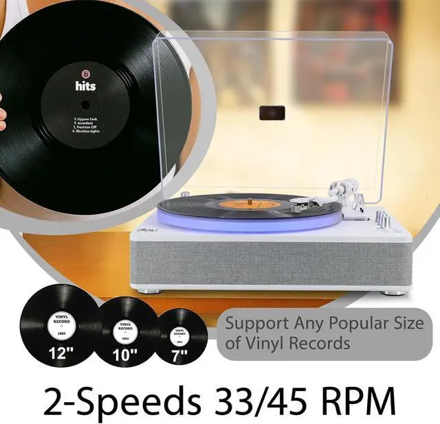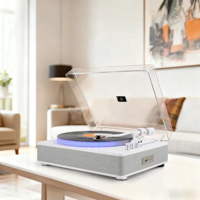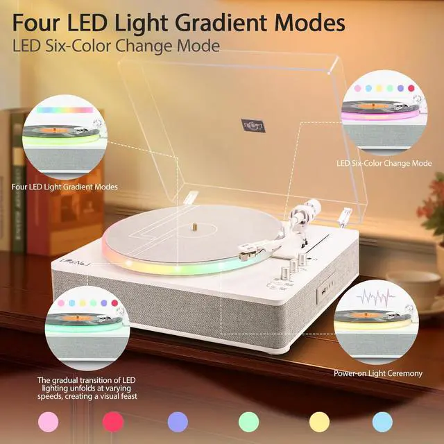 Two lighting modes, six distinct lighting variationseven more dazzling! All-in-one Record Player Best Gift for Your Lover! USB Recording&Playback Frosted Turntable Stereo Vinyl Player