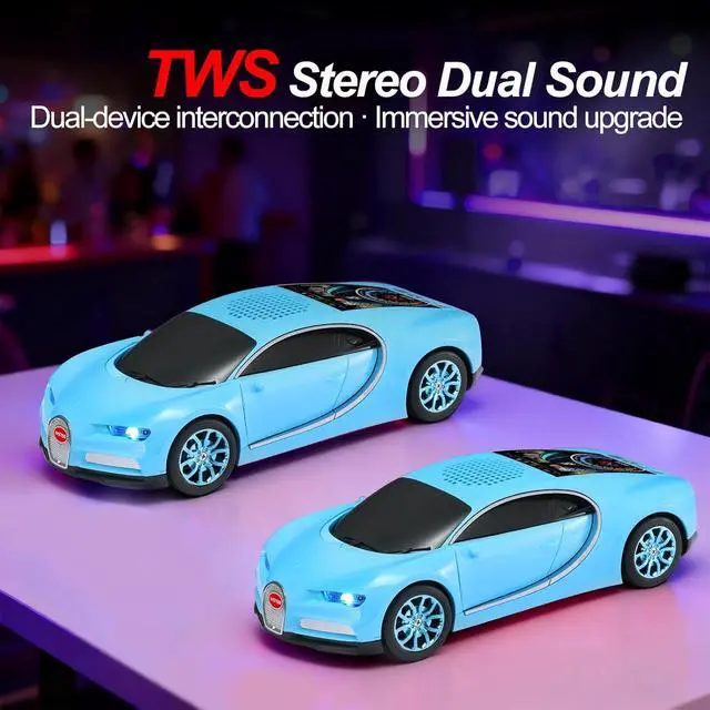 Enjoy Bluetooth,TWS,FM,USB,TF, and hands-free calls in one compact car-style speaker