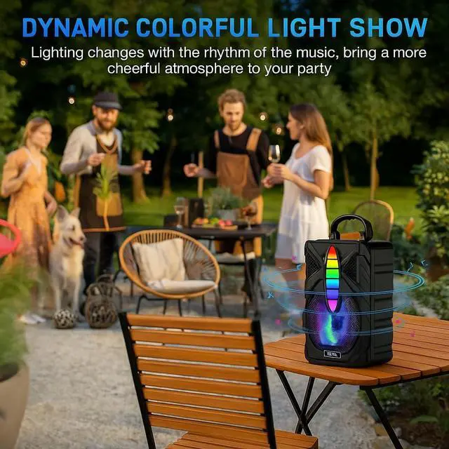[High-Power Stereo Sound] Enjoy the amazing music scene in 360 degrees and experience unparalleled sound quality. Even at high volume, the sound remains distortion-free suitable for parties, home entertainment, and outdoor events