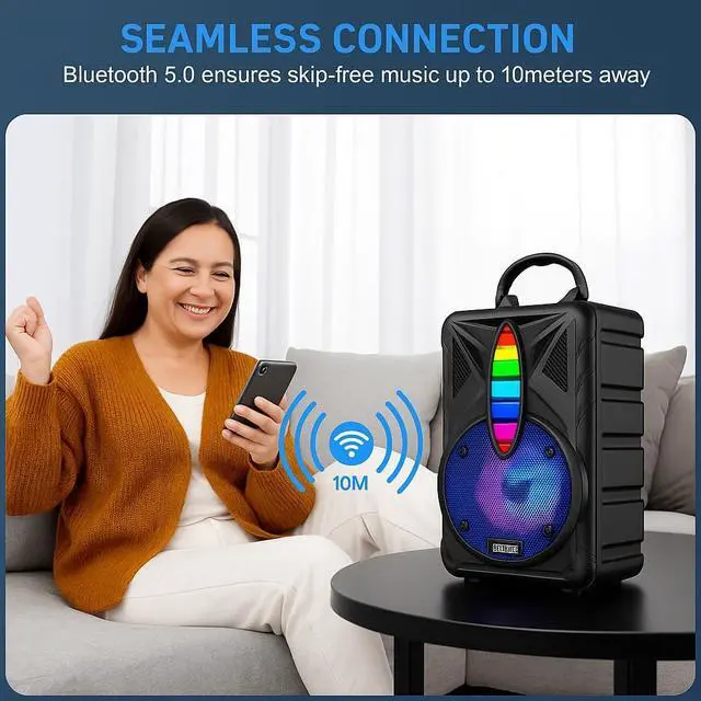 [RGB Rhythm Light Show] The built-in multicolor LED light strip reacts to your music, flashing and changing colors in sync with the beat.Great for karaoke nights, family gatherings, Christmas performances, and various outdoor or indoor party activities
