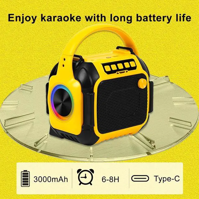 Extended Battery LifeThe karaoke machine features a built-in 3000mAh rechargeable battery delivers 6-8 hours of continuous playback per charge. Fast charging and long endurance meet extended usage needs for karaoke nights, parties, gatherings, or birthday celebrations.