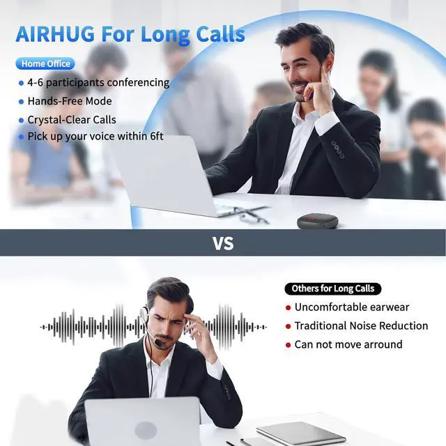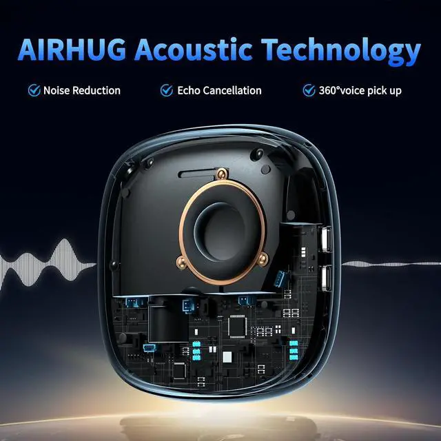 Market-leading Intelligent Noise Reduction Technology - The muti-functional DSP chip with intelligent noise cancellation algorithms would predict and distinguish common or instant noises(100Hz-24khz). Then the noise suppression procedure will eliminate various background noise such as engine, howling, babble etc. It also increases the SNR of conversation to more than 25dB providing a more clear voice. AIRHUG 01 speakerphone makes online meetings easier for you while working from home