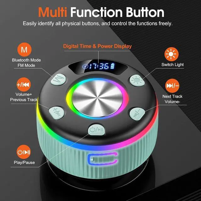 • 2025 Bluetooth 5.3 Technology and Universal Compatibility: This shower Bluetooth speaker elevates your audio experience with next-generation Bluetooth 5.3. Enjoy 50% faster pairing, 30% improved processing power, and 80% greater connection stability than Bluetooth 5.0all for seamless, uninterrupted music even up to 49 feet away. Designed for the modern lifestyle, this waterproof shower speaker works effortlessly with iOS 9.0+, Android 5.0+, and any device supporting Bluetooth 4.0 or above