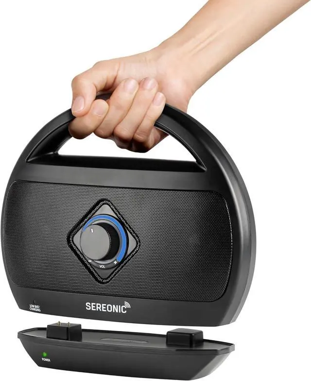 Portable and Powerful Carry your wireless tv sound with you in your den, bedroom, kitchen, or outdoor. Turn your best TV speakers into outdoor TV speakers and improve your watching, listening, and talking experience. Your small TV listening device makes a big difference!