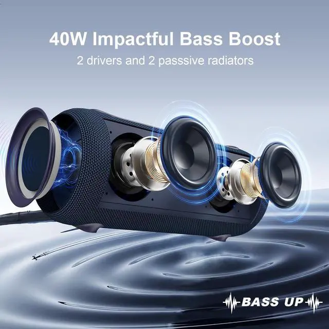 Powerhouse Sound Experience: Feel the floor-shaking 40W bass boost! Dual full-range drivers and precision-tuned passive radiators deliver studio-quality sound - from deep, punchy lows to sparkling highs. Enjoy distortion-free audio at any volume, whether you're hosting a pool party or relaxing solo.