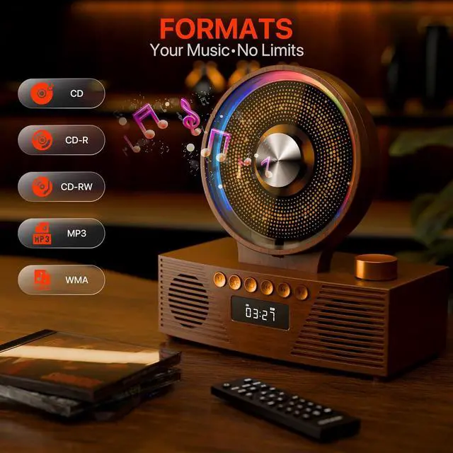 Versatile Playback & Multi-SourceROADOM merges a profound industrial design language with artistic inspiration and retro nostalgia, crafting this unique cd player. It is capable of playing CDs, USB drives, FM radio, and Bluetooth audio, making this portable CD player a perfect cd player for home with support for digital formats like MP3 and WMA. Enjoy versatile home audio with USB/TF card slots and AUX input.