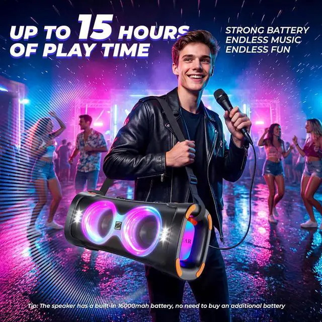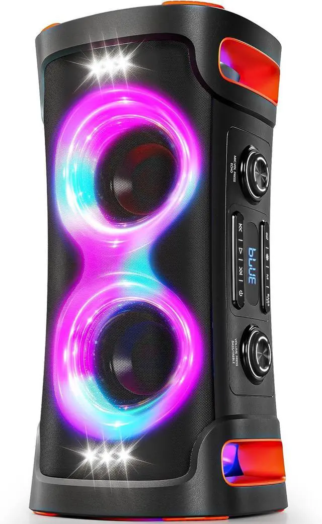 Dynamic Light Show: Lights that move to your music! The party bluetooth speaker featuring a sleek design, Light up the dynamic lighting effect and the wonderful lights will dance and phase with the beat, creating a fiery party atmosphere, enjoy the dual impact of vision and hearing, coupled with high-quality sound to ensure a relaxed atmosphere at home or party, and boosting more off your party.