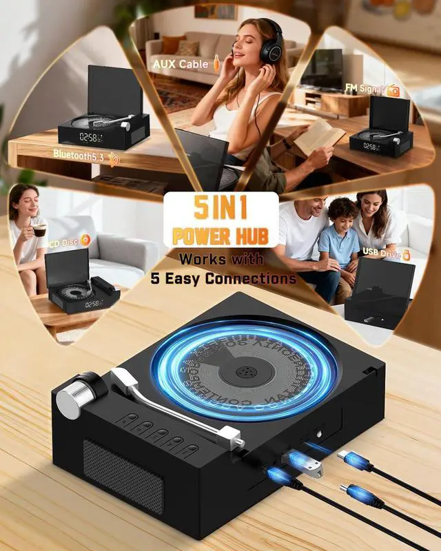 Your Smart Multi-Alarm Daily Conductor :Wake up and wind down with the music you love. The Qobayleo multifunctional cute cd player for home features a precise digital clock and 15 programmable alarmsset a unique soundtrack for every part of your day, with each alarm paired to your favorite CD, USB tracks, or Bluetooth audio. More than an alarm clock radio, its your personal routine keeper, ensuring you move through your daily flow on the perfect note with reliable, musical timing.