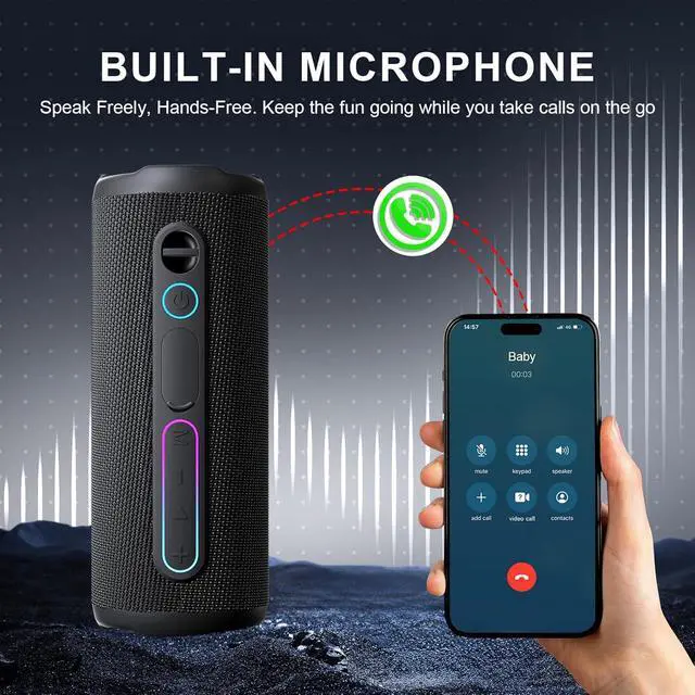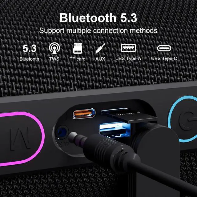 Enhanced BassThe bass bluetooth speakers T300 features an integrated BASS system with powerful bass capabilities, effortlessly extending audio down to 30Hz and even below 20Hz. Even at low volumes, you can distinctly feel the bass vibrations and surround sound. Experience deep and powerful bass. Supports EQ mode adjustment, allowing easy switching between bass and vocal professional EQ modes to meet diverse listening needs. This is the perfect gift for music lovers and tech enthusiasts