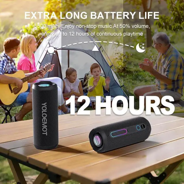 40W Stereo Sound Loud Wireless Bluetooth Speaker: Experience our most powerful portable T300 speaker, and enjoy YOLOEMOT Enhanced bass, powerful mid-range and clear treble, without any distortion at any volume sound that fills the entire room. Combined with dual passive radiators and the EQ audio effect mode, the peak power can be increased to 50W. Even when played at a low volume, this guarantees that you can enjoy clear, loud music in any setting