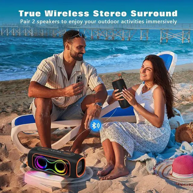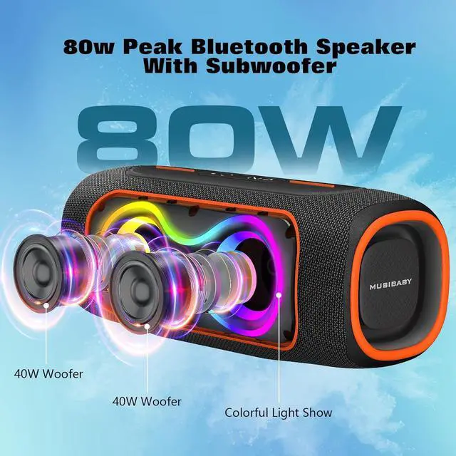 Powerful 80W Stereo SoundThe portable bluetooth speaker with lights features a dual tweeter + dual woofer four-driver acoustic configuration, where each driver performs its specialized role like professional audio equipment. With zero distortion audio, this blue tooth speaker delivers loud highs, rich mids, and deep bass, transporting you to a live concert venue for a truly unparalleled listening experience