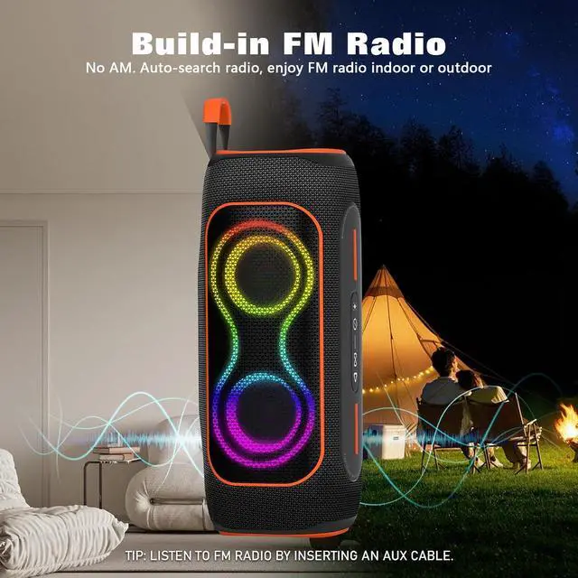 Dynamic RGB Light ShowEnjoy an exciting light show that dances to the beat of your music. This portable speaker bluetooth delivers loud sound and features dazzling light effects that shift with the rhythm of your tunes. Instantly elevate the vibe at parties, camping trips, or in your roomit's the ultimate mood-setter for nighttime and indoor scenes