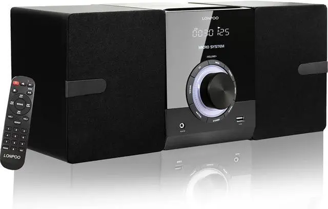 Multi-mode Micro Shelf System --- This CD stereo system is a complete solution that meets more requirements: Top-loading CD player supports CD/CD-R/CD-RW; Packed with features for listening to FM radio (NOT AM); Wireless streaming of audio content from your smartphone/mobile phone via Bluetooth, Play MP3s/WMAs via USB, 3.5mm aux input for playing audio from other devices.