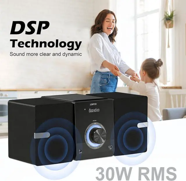 Rich & Clear Sounds --- LP-886 home stereo system Bulti-in DSP technology, provide 30W (2 x 15W RMS) via the power speakers: High-performance Balanced Woofers for powerful and transient bass.