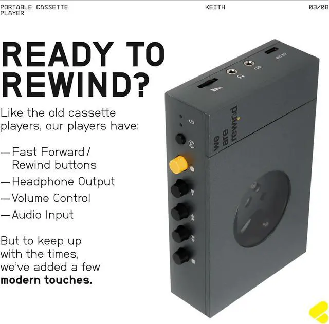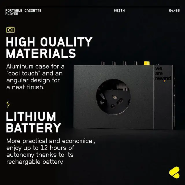 Premium Build: The We Are Rewind cassette player and recorder is made with quality materials for a premium feel and lasting durability. The heavy-duty aluminum casing and built-in rechargeable battery add to the overall quality and portability.