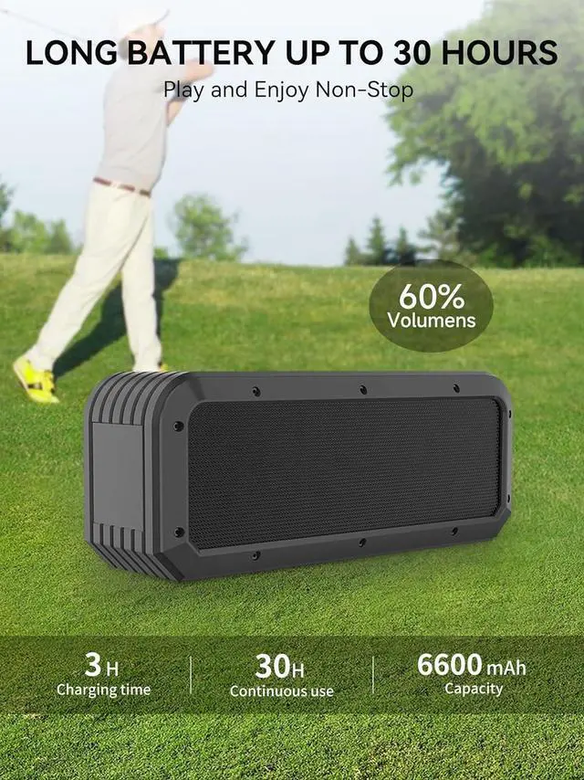Long Battery Up to 30 Hours: The built-in 6600mAh battery provides up to 30 hours of music playback(50% volume), making X3S golf speaker perfect for outdoor use as an outdoor bluetooth speakers wireless and a great golf accessory or golf presents for men