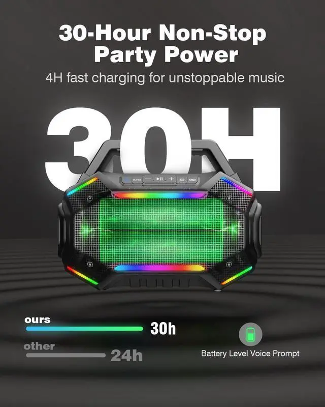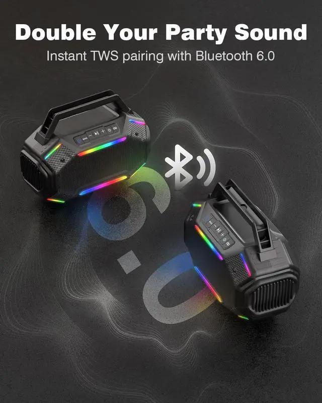 Superior Sound Quality: Experience immersive lossless audio effects with our upgraded Bluetooth 6.0 party speaker. The 40W full-range driver and dual passive radiators work together to deliver deep, powerful bass and clear, crisp mid-to-high frequencies. Whether you're hosting a backyard barbecue, trunk party, or campfire gathering, this soundstage-filling performance ensures every beat hits with impact.