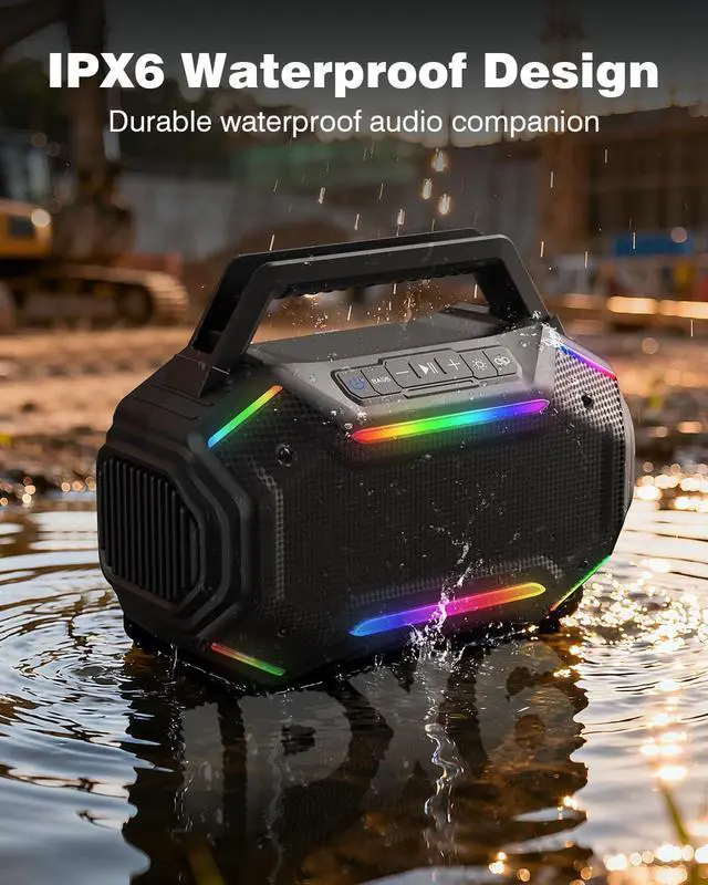 Durable Design: This speaker is specifically designed for outdoor and workplace use, combining a rugged protective casing with the next-generation Bluetooth 6.0 chip to achieve faster pairing, stronger signal transmission, and a wireless range of up to 100 feet. Its stable connectivity with iPhone and Android devices ensures uninterrupted music playback no matter where you are.