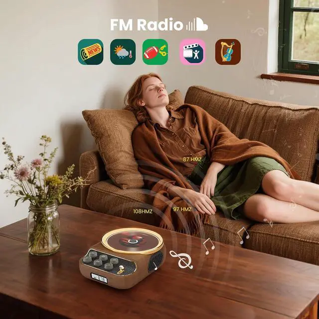 Loop Mode and FM Radio: There are 4 play modes for playing CD and TF card slot music: single, all, random and sequential play. It can also wirelessly receive FM radio stations and listen to your favorite radio stations in real time. The AUX and Type interfaces on the back can directly connect other audio devices to enjoy high-quality sound effects.