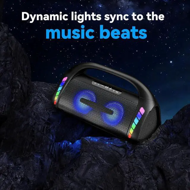 Creative Led Lights & TWS:Featuring multi-colored LED lights synced to the beat, this portable speaker bluetooth add a fun vibe to your party, pushing up the passion .TWS connection with two soundstorm bluetooth speakers, the two portable bluetooth speakers creating left and right channels immediately brings you extraordinary clarity and detail,gets fully immersive and spatial audio experience.