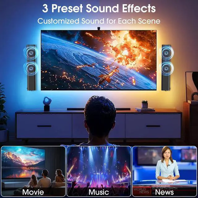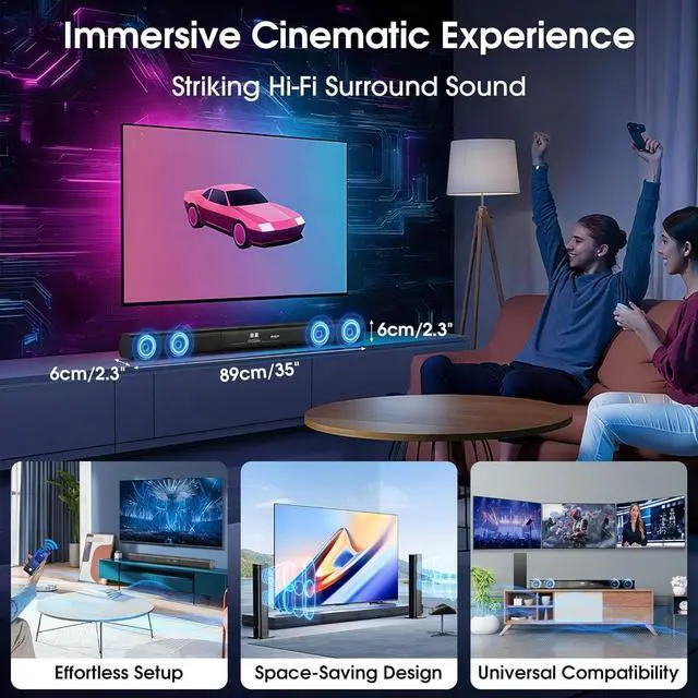 [Unique 3-Section Detachable Soundbar - Your Sound, Your Way] Break away from the ordinary! Our soundbar (35in) uniquely separates into three pieces (Left, Center, Right), offering unparalleled flexibility. Set it up as a single bar, create a wider stereo stage, or mount them on the wall to perfectly fit your space and decor.
