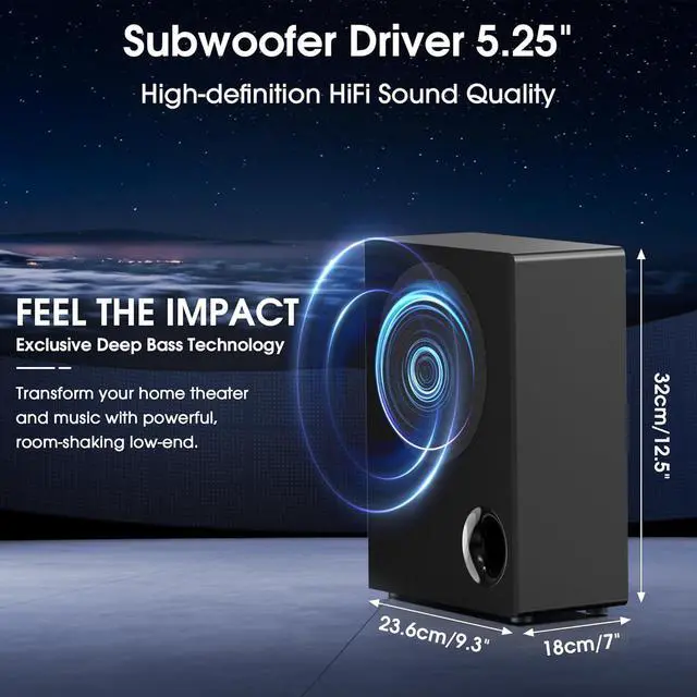 [Compact Design, Powerful Performance] Don't let its size fool you. The sleek, space-saving subwoofer is engineered to deliver surprisingly powerful bass, enhancing your audio experience without cluttering your room.