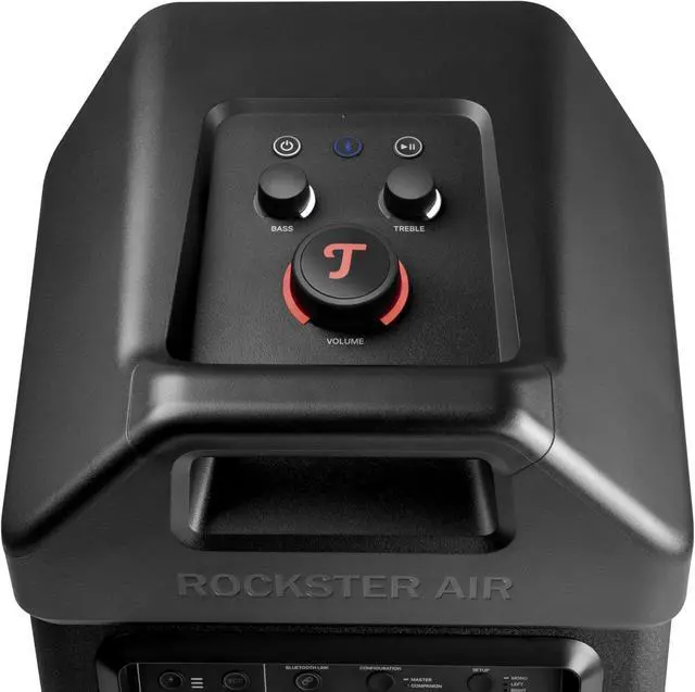 The acoustic setup is unrivaled by any other speaker in its size category. The ROCKSTER AIR 2's true hallmark is clear, tight, deep bass with no artificial overemphasis. Huge bass reflex ports placed high on the unit minimize flow noise and keep grit and dust out. Midwoofer along with 32-bit DSP and class-D power amplifier provide particularly natural mid-tones almost on the level of a true 3-way system. Constant Directivity Waveguide helps the sound waves travel farther horizontally.