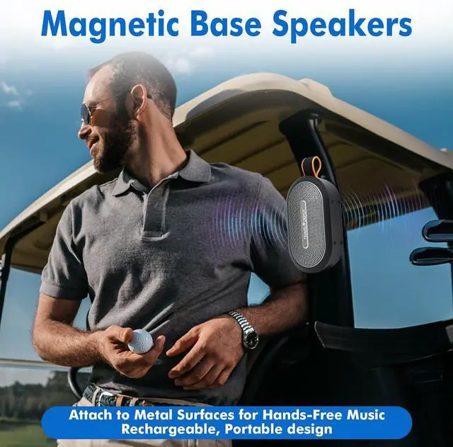 Magnetic Mounting: Conveniently attach the golf speaker to any metal surface with its magnetic base, offering hands-free placement and easy access to your music