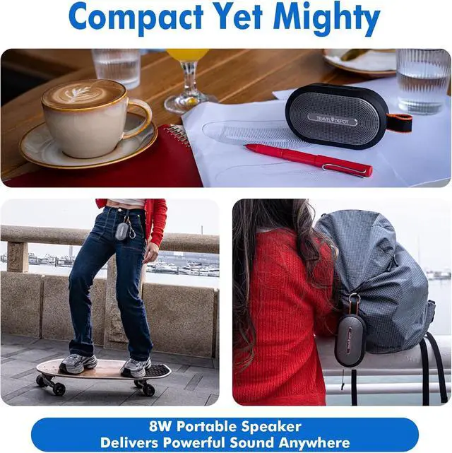 Compact Yet Mighty: Dont let its size fool you! This small portable bluetooth speaker packs a punch with 8W of powerful sound, delivering an impressive audio experience wherever you go