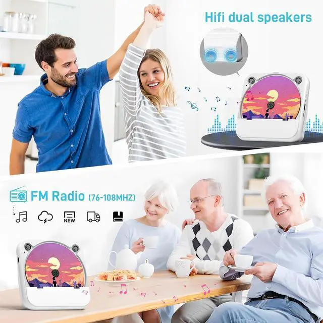 CD Player with Speakers and LED ScreenEquipped with two HiFi speakers, immerse yourself in high-quality stereo surround sound through high fidelity technology. This Bluetooth Portable CD player ensures clear audio with minimal distortion even at maximum volume. This portable CD player has a top screen where you can clearly see the playback mode, volume level, music playback or pause control displayed on the screen.Press the m button to switch to FM mode, where you can listen to news,weather information,traffic,and music from each channel during your leisure time.