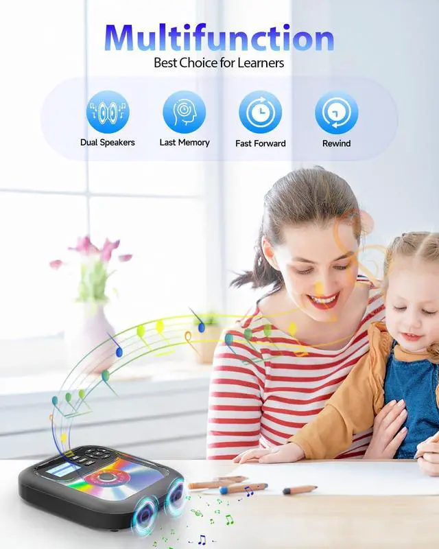 VERSATILE FUNCTIONS FOR MULTIPLE NEEDS: Equipped with 7 EQ modes and 5 playback modes, it adapts to various music genres and listening preferences. Supports TF card (micro SD card) and CD-to-TF card recording, allowing you to store favorite music on a small card for easier outdoor carry. The A-B repeat function is a practical tool for language learning, music practice, or memorizing key content.