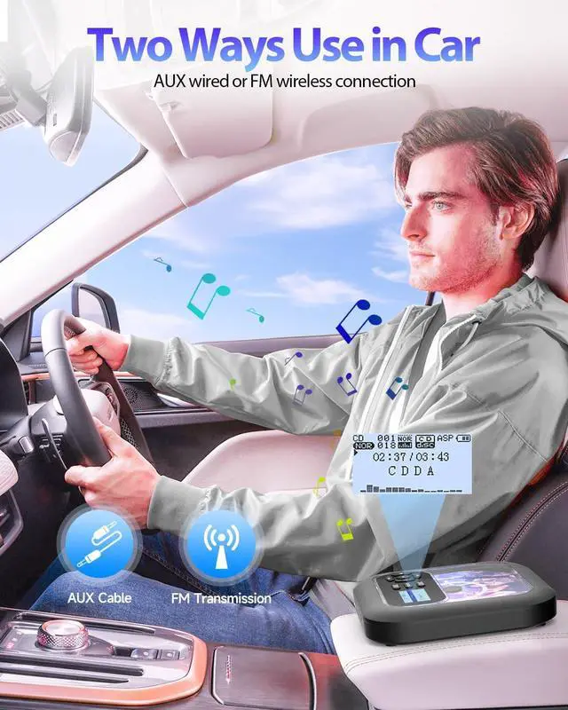 BLUETOOTH TRANSMITTER FOR WIRLESS LISTENING: This CD player features a Bluetooth transmitter function, which pairs seamlessly with Bluetooth headphones, speakers, and other Bluetooth receiver devices for wireless audio. Note: It cannot connect to cars, phones, or laptops directly. You can use the AUX cable to use in car