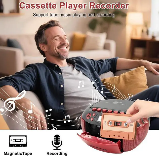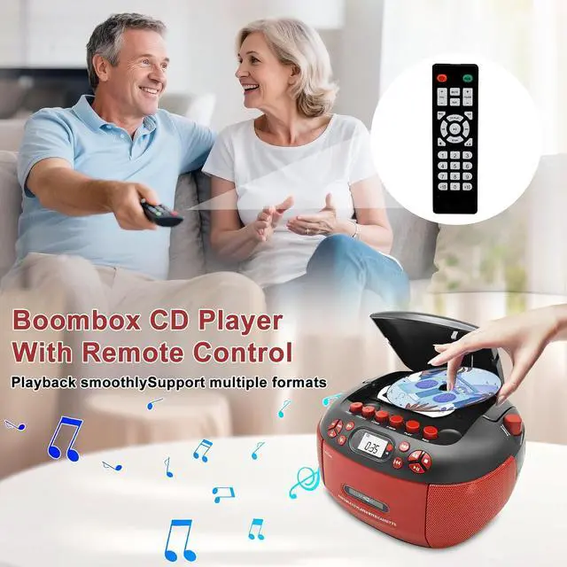 [CTDZLED Portable CD and Cassette Player Boombox] Enjoy your favorite music anywhere with our CTDZLED boombox, featuring CD playback, cassette player, USB input, 3.5mm headphone jack, Bluetooth connectivity, dual speakers, and remote control operation. Perfect for elderly music lovers, gift-givers, and retro enthusiasts. Ideal for home, kitchen, bedroom, or on-the-go use.