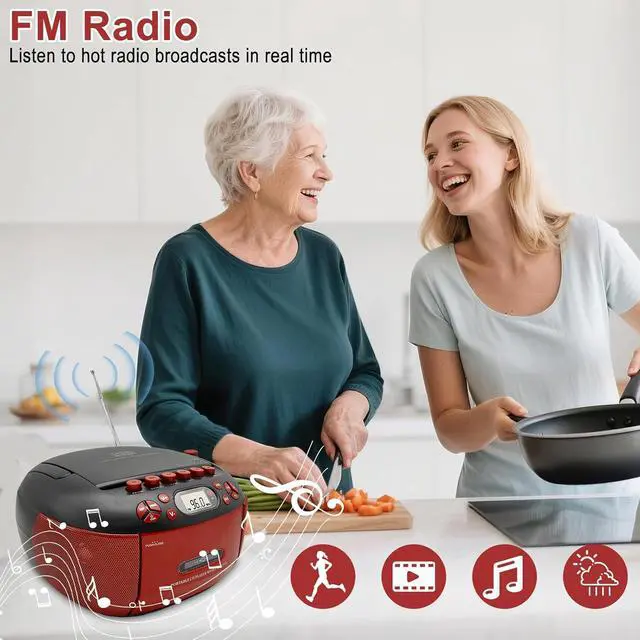 [Enhanced FM Radio Reception for Clear Audio] Experience crystal-clear sound quality with our CD cassette player's best-in-class FM radio reception. Equipped with a long antenna and upgrade chip, this boombox delivers excellent performance. Tune in to your favorite talk shows, sports events, and news broadcasts with ease. LCD screen for easy navigation and control.